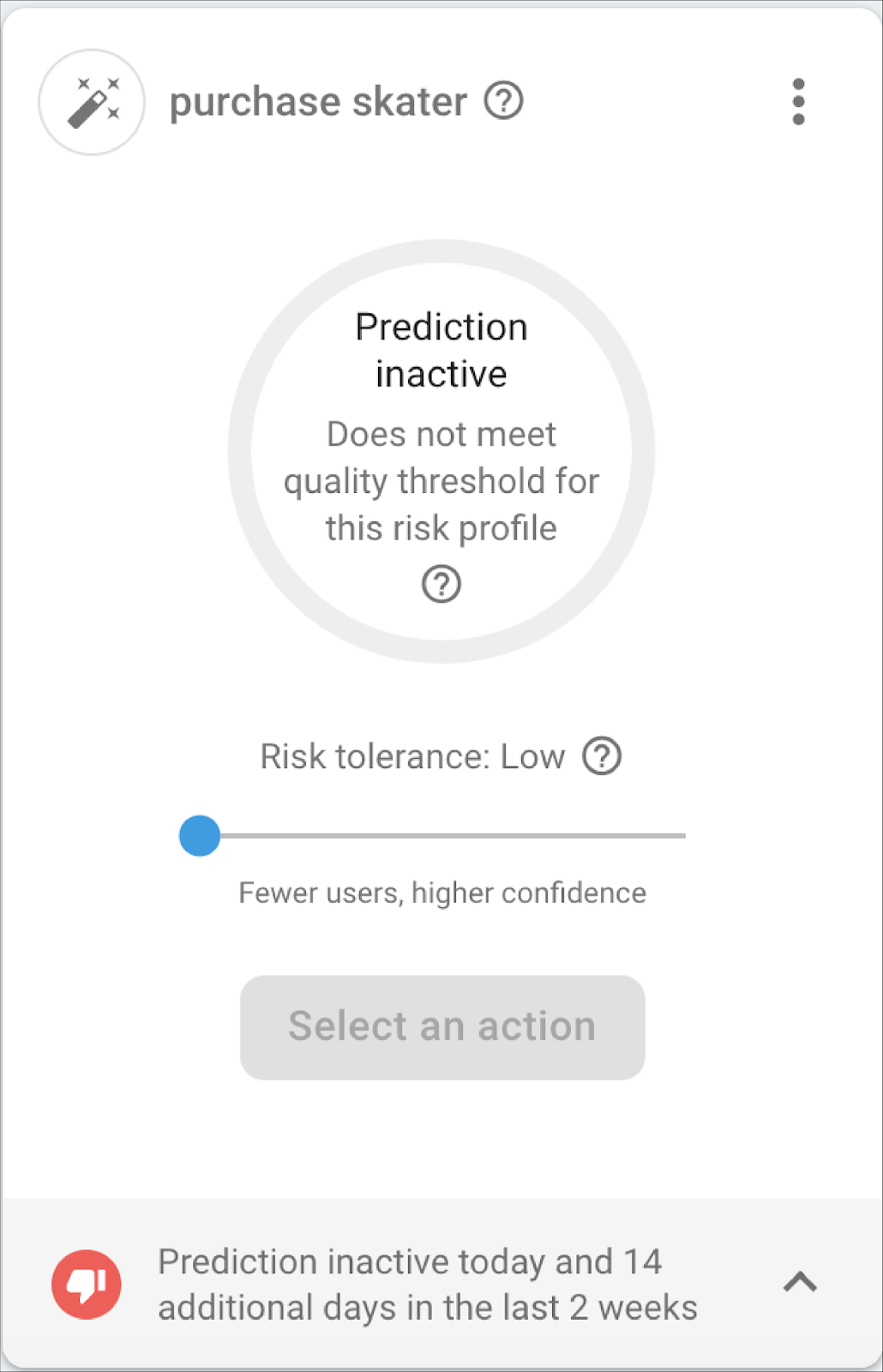 To help answer this question, we created a health indicator at the bottom of each predictive segment card that gives you a snapshot of how a certain prediction is performing: